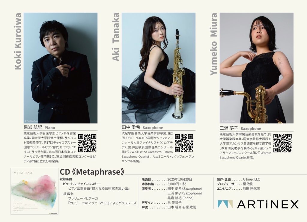 後援:日本サクソフォーン協会、東京藝術大学音楽学部同声会